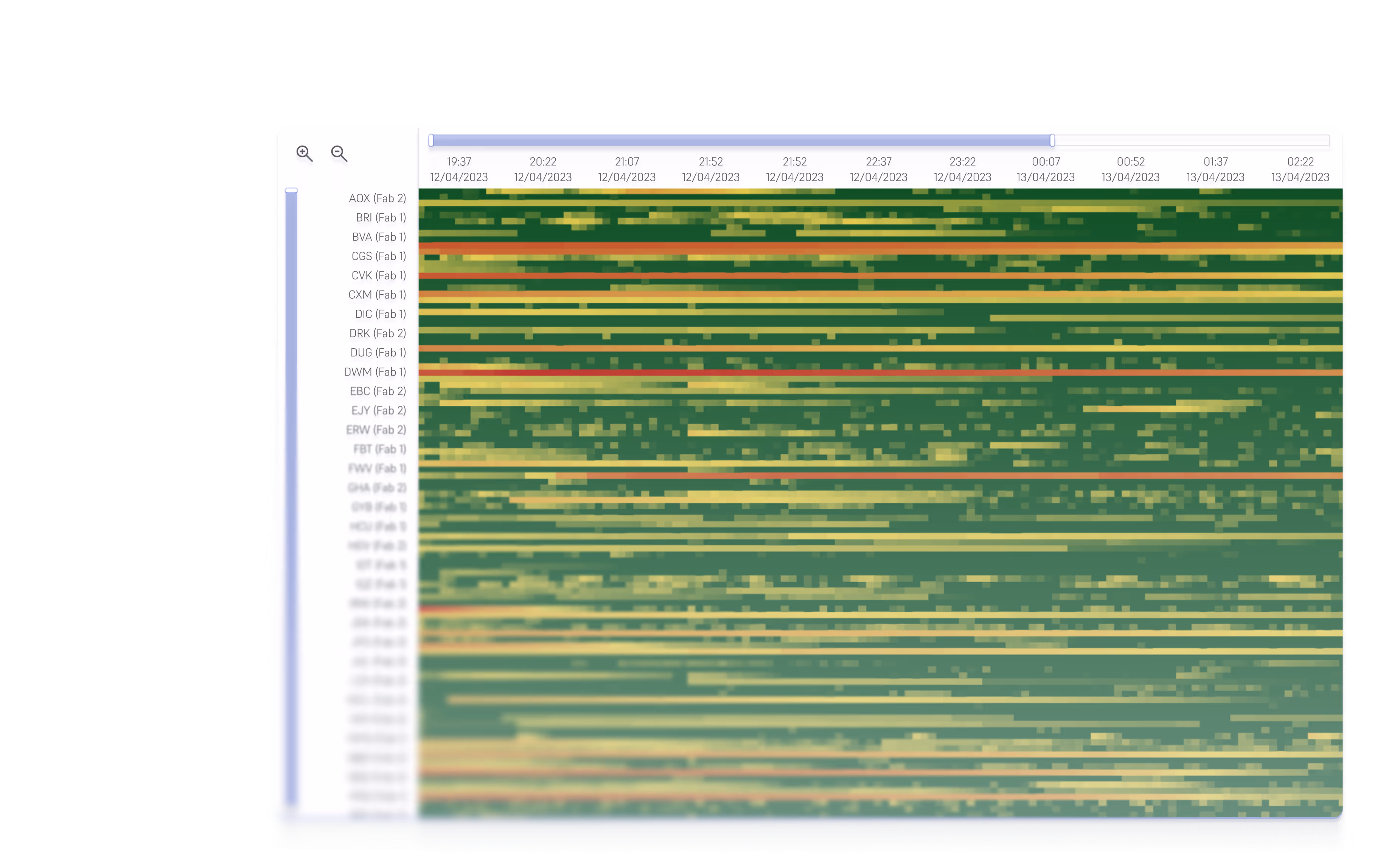 The Heatmap feature provides a birds-eye view of fab congestion across time and tools. Helping you to monitor fab dynamics in real time, identify issues before they escalate, and take proactive control of WIP direction with one glance.