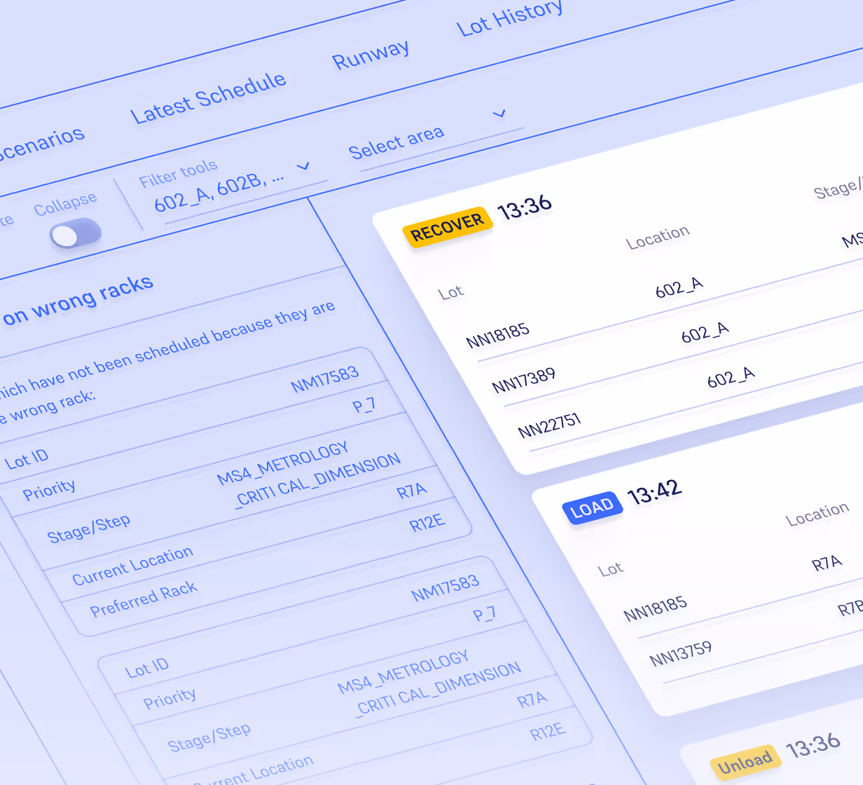 Flexciton’s Autonomous Technology empowers chip manufacturers to maximise production performance with far greater confidence. By replacing outdated, reactive systems with intelligent, real time data-driven decision-making, we deliver optimised plans and schedules—enabling fabs to run with greater precision and autonomy.